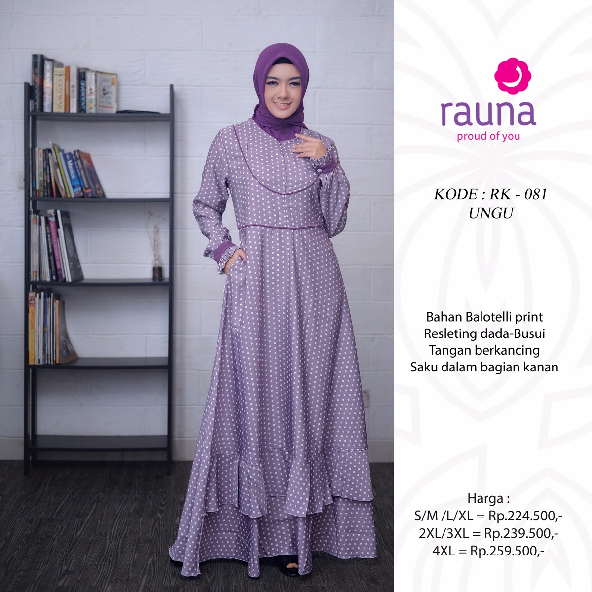 KOLEKSI GAMIS MUSLIMAH TERBARU RAUNA RK 81 www.kiosbajumuslimah.comrauna gamis rk muslimah deskripsi
